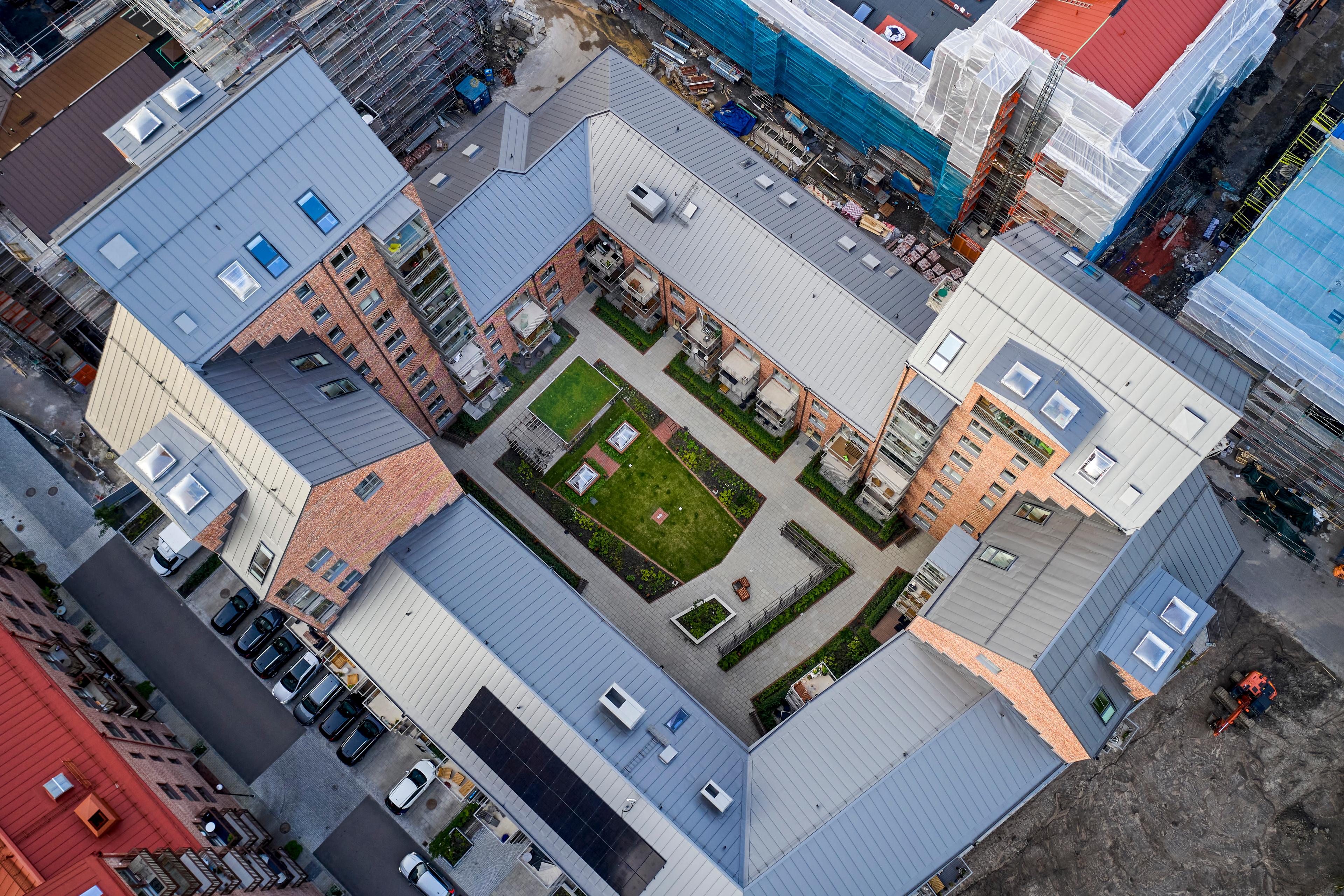 Ihop med HSB Göteborg ville vi skapa ett modernt bostadskvarter med klassiska kvaliteter. Inspiration har hämtats från stadens nationalromantiska sten- och tegelhus i bl.a. Johanneberg. En ordnad och harmonisk fönstersättning med fina proportioner framhäver kvarterets dynamiska och livfulla grundform, samtidigt som det ger kvarteret lugn, värdighet och en känsla av bestående kvalitet.
