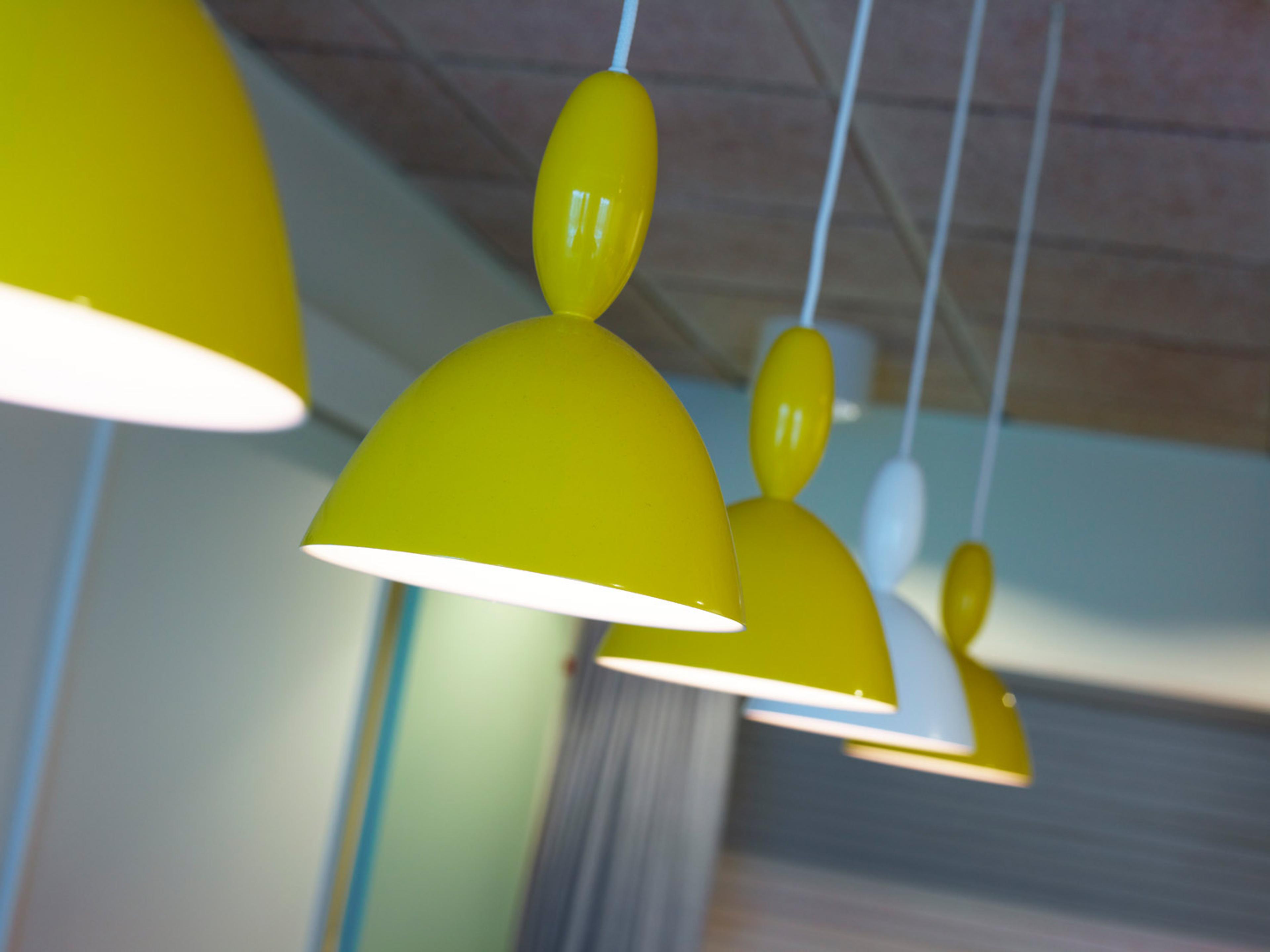 Inredningen har ett mörkt linoleumgov utvecklat av en textildesigner som vanligen arbetar med materialet ull vilket avspeglas i golvets mönster och kulörer. I övrigt är kulörerna i huvudsak milda med några accenter som undantag. Ett udda och roligt tilläggsuppdrag var att ta fram arbetskläder. Personalen kan välja mellan tre olika kulörer som är anpassade för att harmonisera med inredningen.
