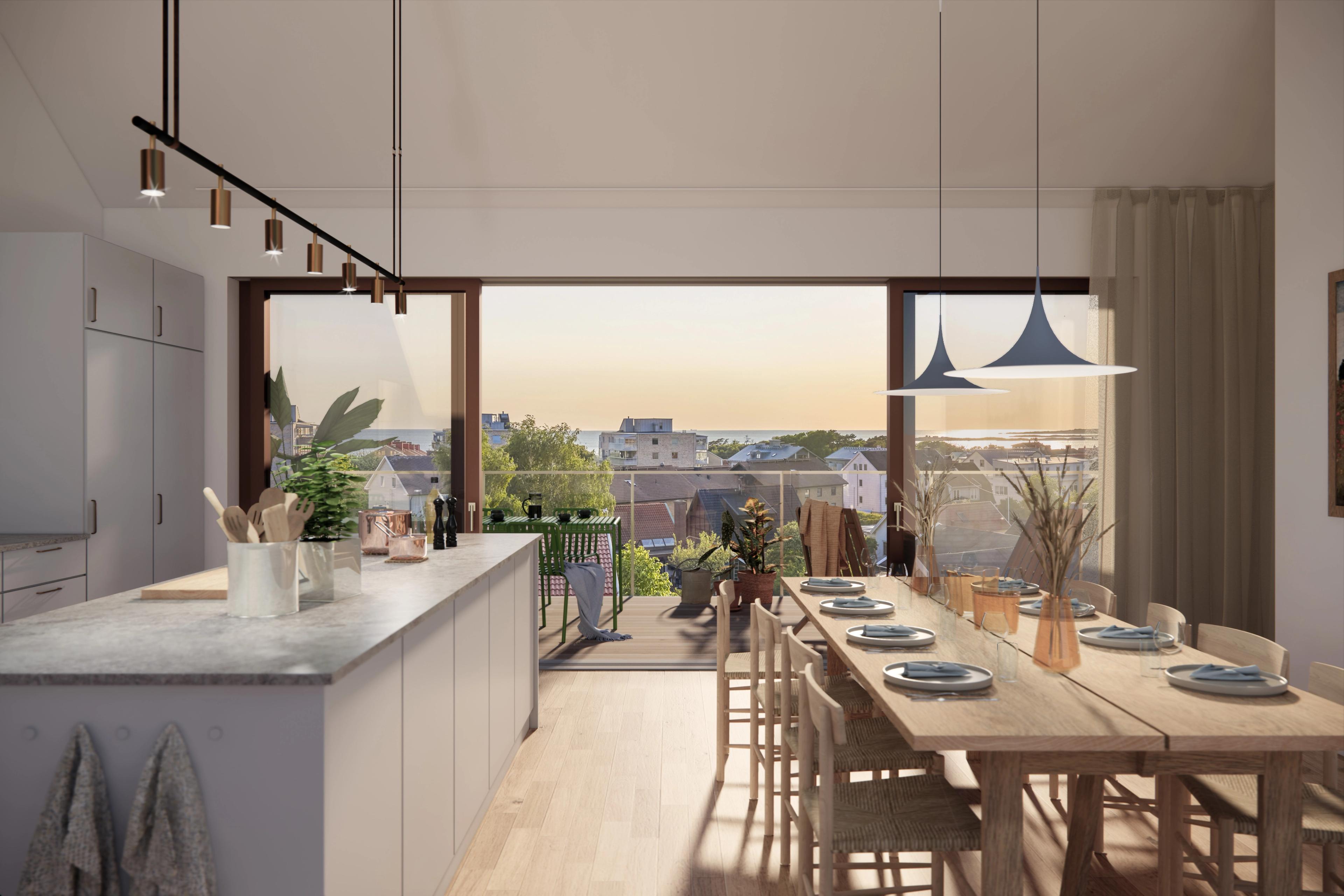 Projektet omfattar 45 bostadsrätter med en variation på olika typer av planlösningar med lägenhetsstorlekar från 1 rok till 4 rok. De övre våningarna ger utsikt mot havet och Varbergs fästning.