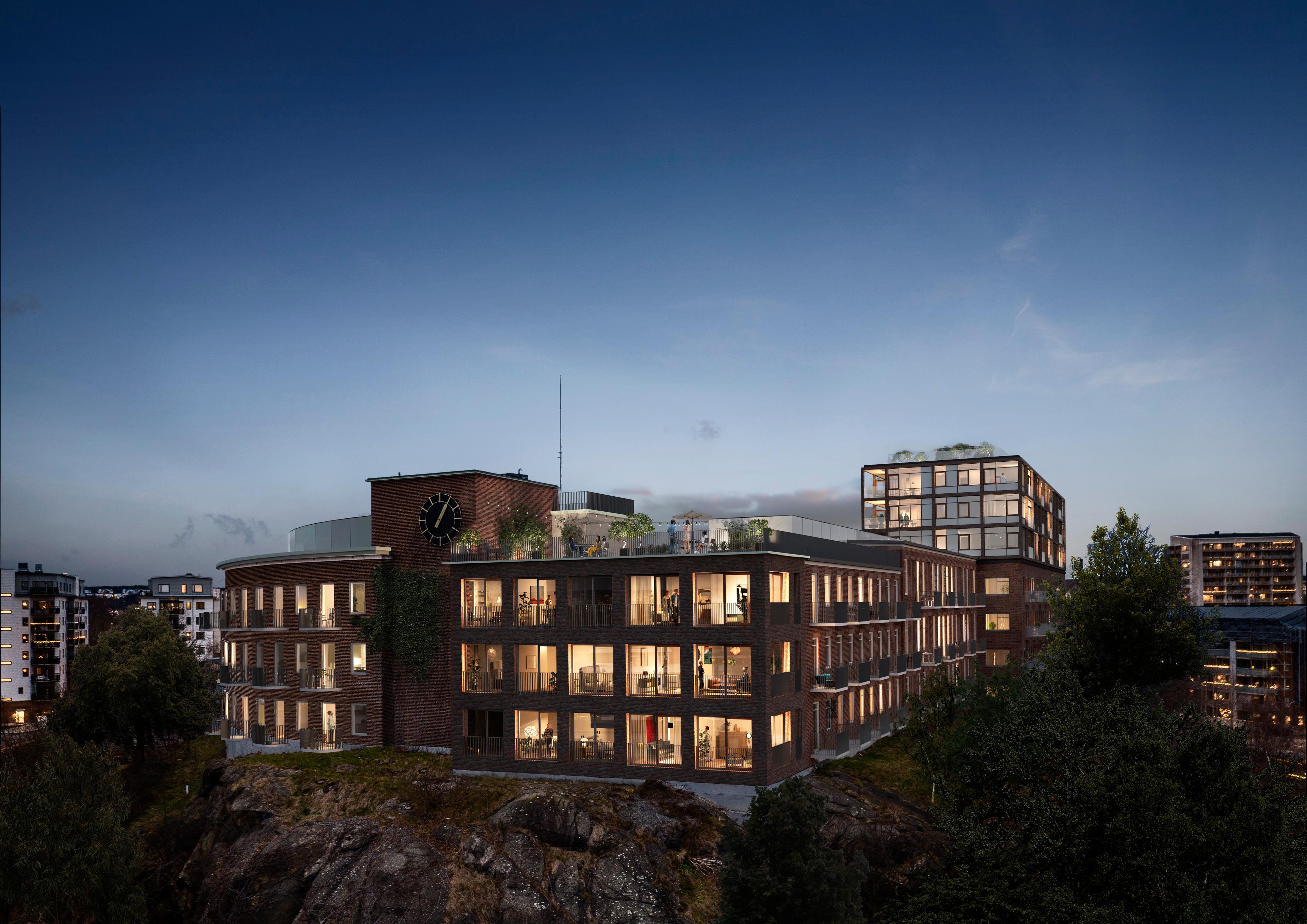 Vinst i parallellt uppdrag för om- och påbyggnad av kontor till bostäder på Hisingen i Göteborg. Den befintliga byggnadens fasad och takfot bevaras men kompletteras med nya balkonger. Påbyggnadens arkitektur har sammhörighet med den befintliga byggnadens struktur och kulör men uttrycket är både lättare och öppnare. Det ger möjlighet till andra planlösningar i de tre översta våningarna. Påbyggnaden är en träkonstruktion med fasad av plåt för att inte få för hög belastning på den befintliga byggnaden.