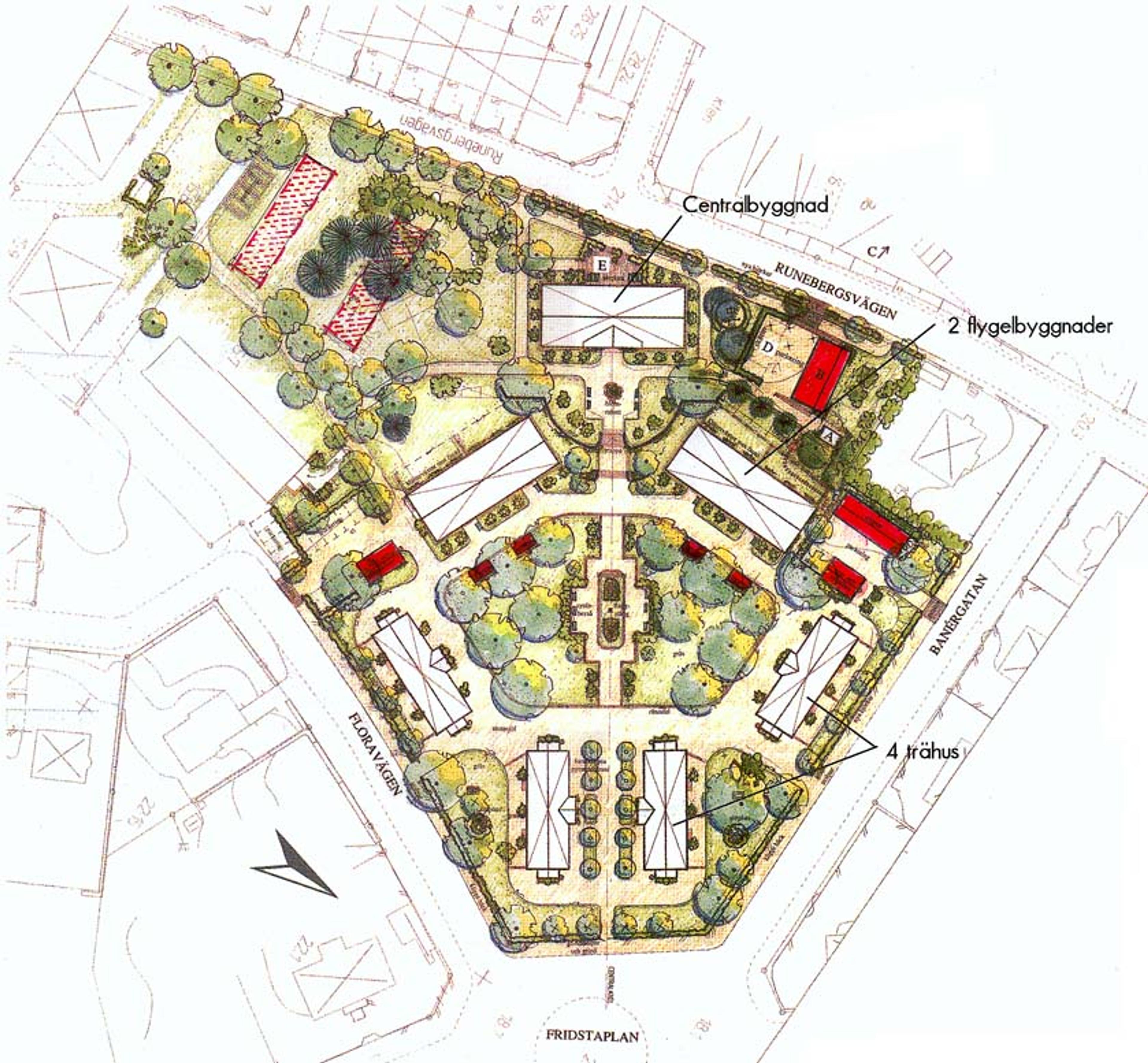De fyra trähusen byggdes om till 16 radhusenheter som inkluderar både vind och källare. Nya exteriöra tillägg är omsorgsfullt utformade takkupor. Två av de putsade stenhusen innehåller nu 36 studentlägenheter. De ursprungliga ettorna har renoverats och kompletterats med vindslägenheter. I centralbyggnaden finns nu 5 stora och ovanliga lägenheter bildade av flera mindre, samlingssalen samt vinden.