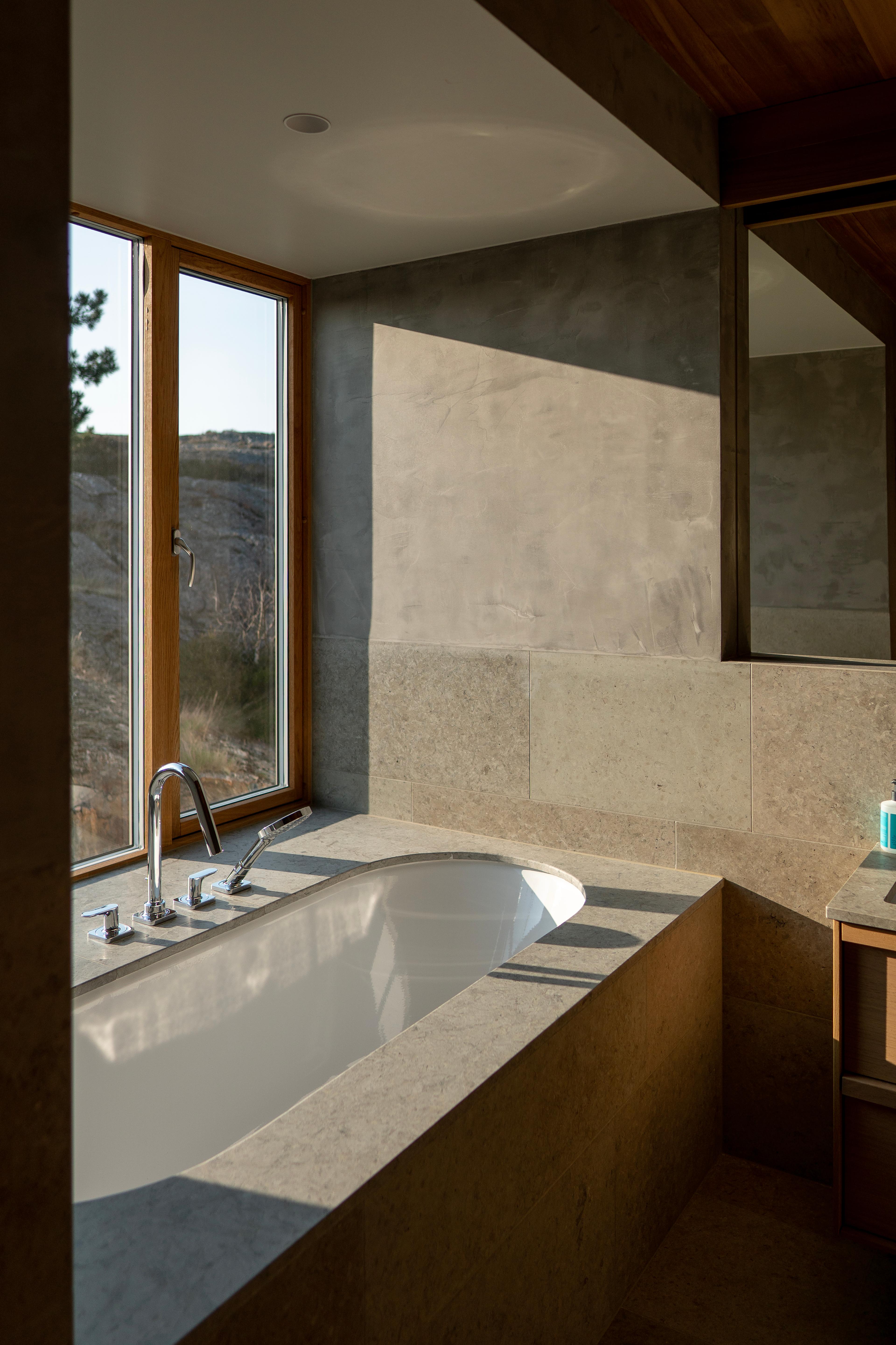 Fastigheten är belägen i ett naturreservat och består av klippor blandat med låg växtlighet samt en klåva där växtligheten i skydd av västervinden var frodigare. Tre viktiga intentioner var vägledande för gestaltningen. Arkitektur som underordnar sig landskapet. Förstärka klåvans kvaliteter som grönskande läplats. Ta vara på havsutsikten.