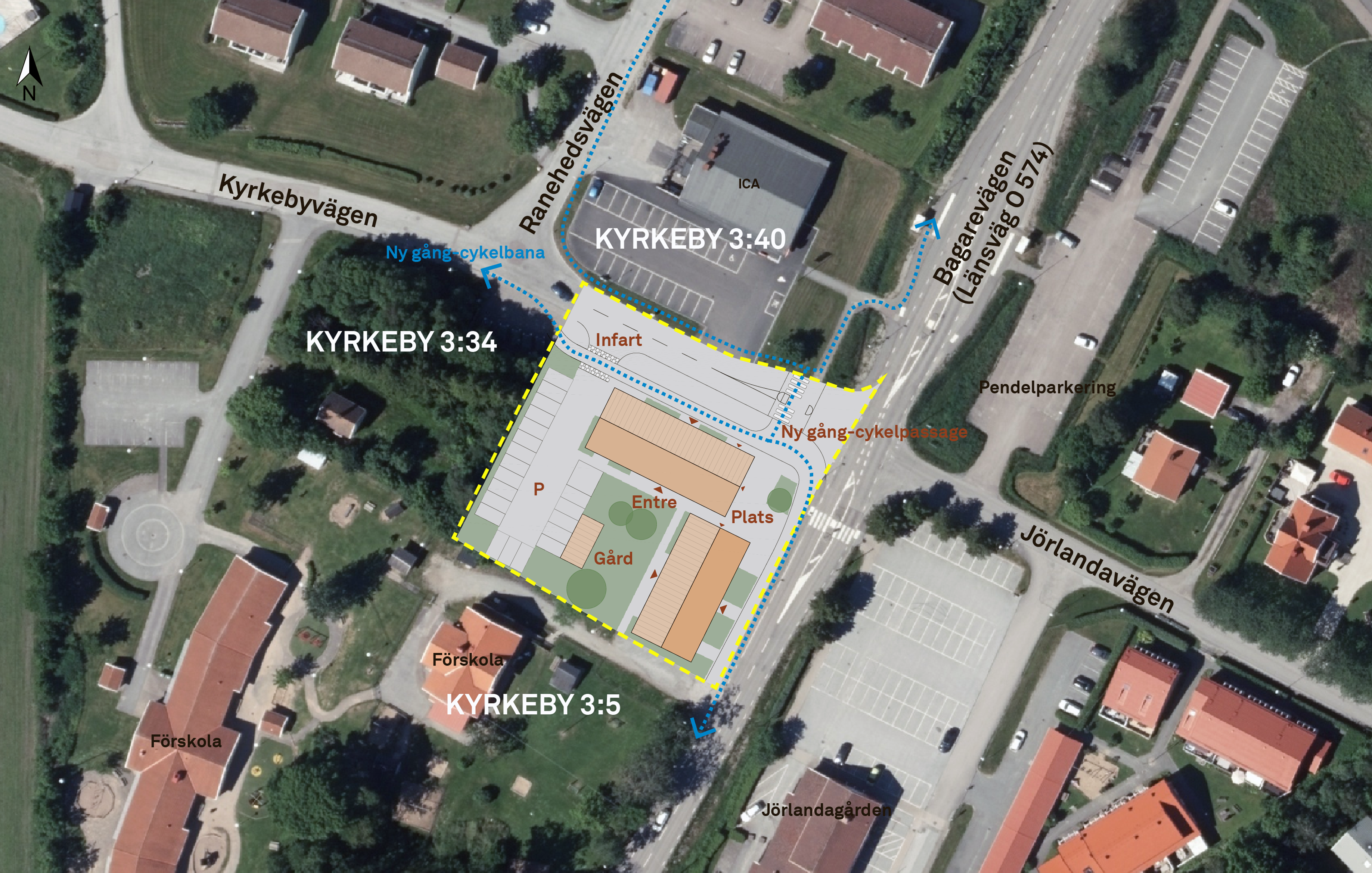 Detaljplanen för Kyrkeby 3:36 möjliggör förtätning av centrala Jörlanda genom byggnation av flerbostadshus med centrumfunktioner i markplan. Planen innehåller också nya gång- och cykelbanor. Planområdet omfattar ca 3000 m² och inkluderar delar av fastigheterna Kyrkeby 3:36 och 3:34, avgränsat av befintliga fastigheter och väg 574.