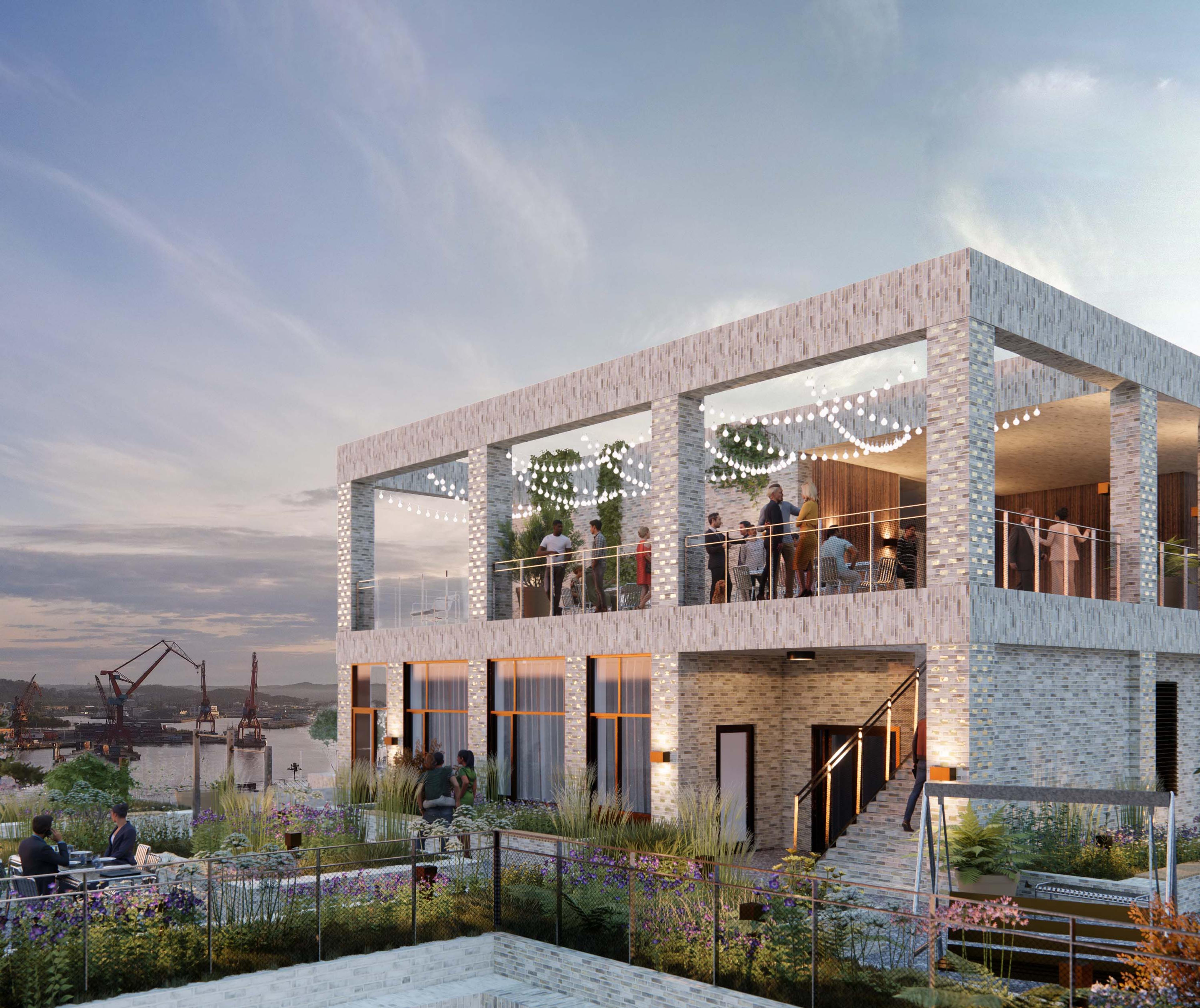 Parallellt uppdrag om kvarteret F2 på Masthuggskajen i Göteborg. En mindre fastighet med hög exploatering i anslutning till Masthuggstorget. Uppgiften var att ge förslag på en byggnad med blandat innehåll. Handel på plan 1 och kontor på plan 2 och 3. Däröver bostäder, 50% hyresrätter och 50% bostadsrätter.