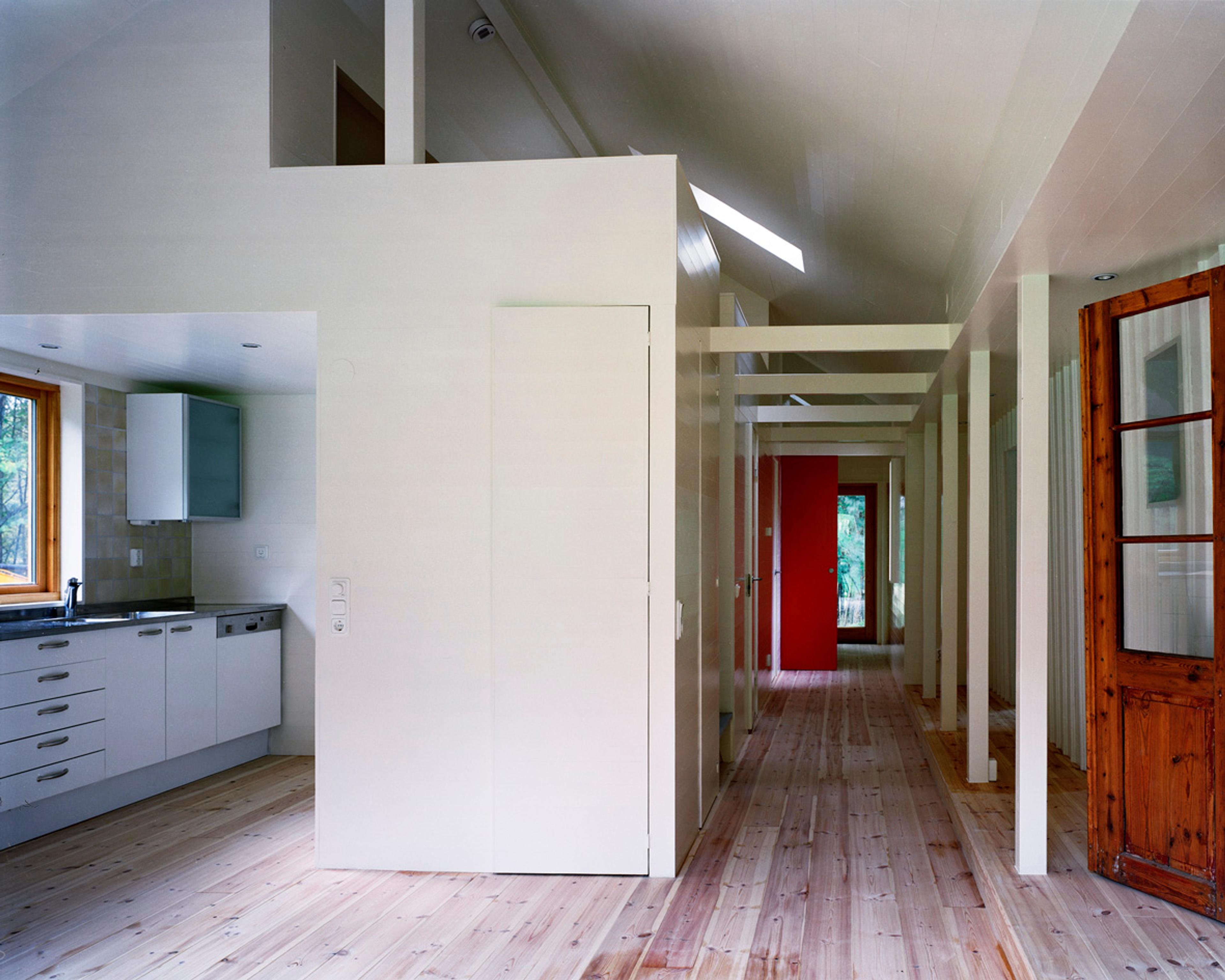 När familjen växte ytterligare byggdes ännu en tillbyggnad, nu för tonårsbarnen att bo i. Byggnaden fick stå på pelare. Vi kallar den delen av projektet "på egna ben", vilket stämmer på både byggnaden och de boende.