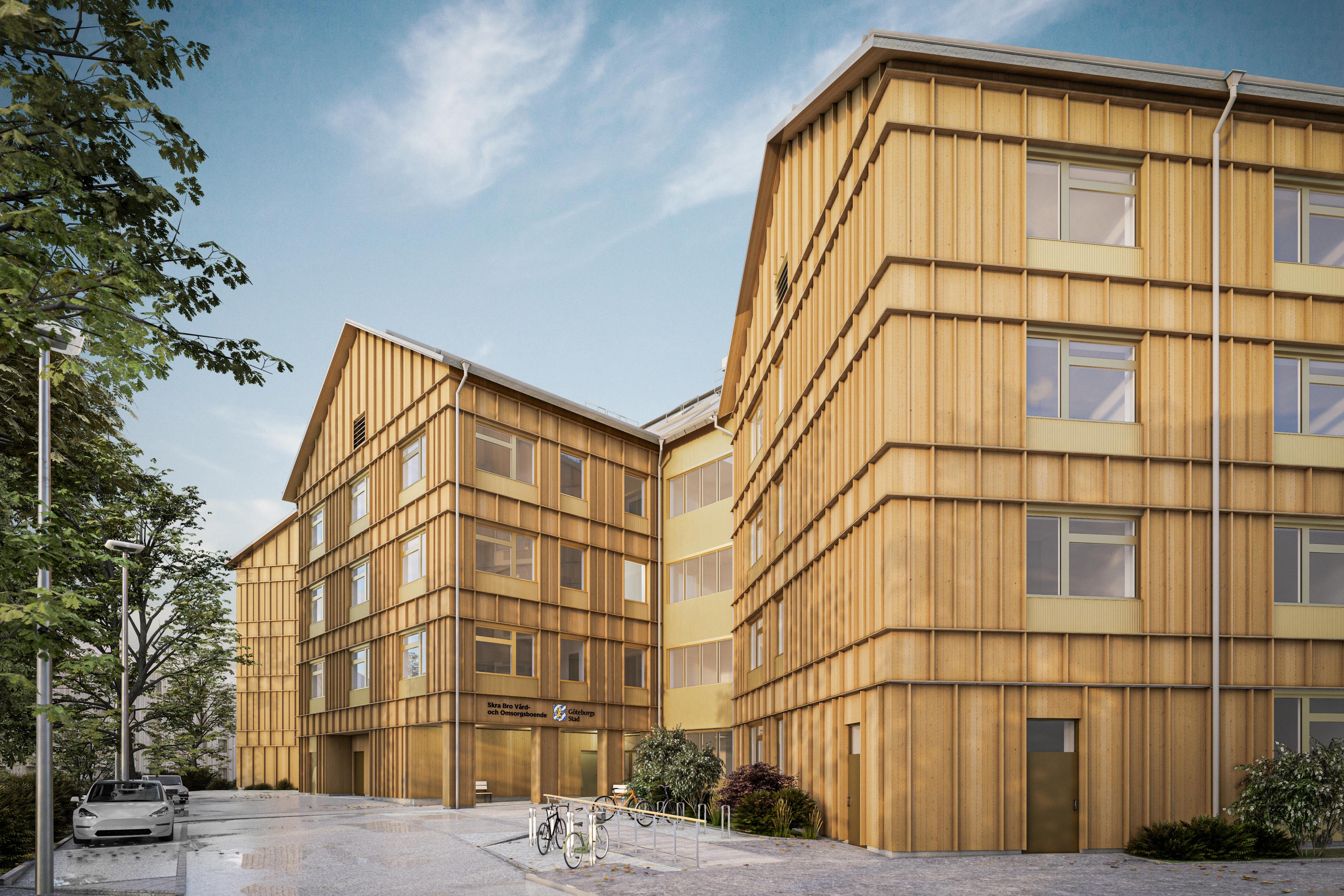 Skra Bro VoB är ett vård- och omsorgsboende på Hisingen i Göteborg som vi ritat för Stadsfastighetsförvaltningen. Projektet började 2020 med dialogprocesser och workshops, vilket resulterade i en programhandling. Som generalkonsult har vi sedan tagit fram ett förfrågningsunderlag för nästa skede.